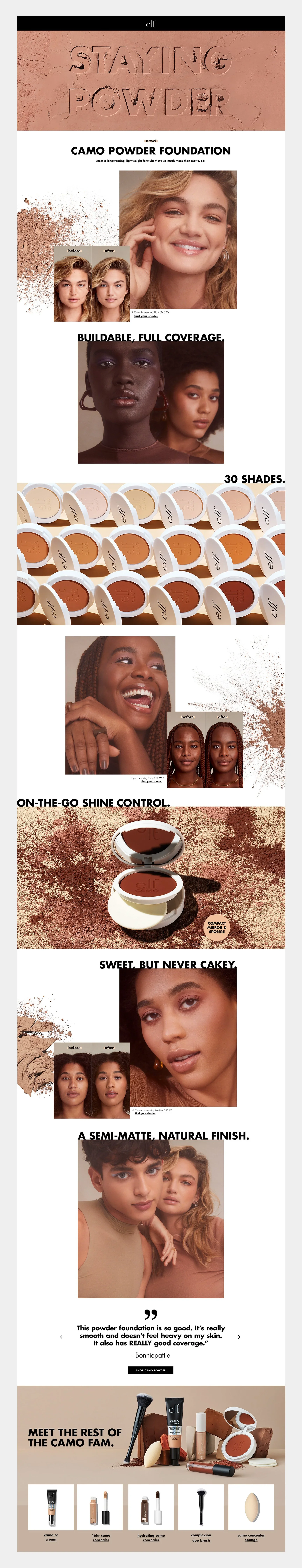 The powder you prayed for. Introducing Camo Powder, a full-coverage, matte-finish powder foundation—formulated with a primer base for smooth, lasting application. Combat shine & sweat on the go, all in a pocket-sized compact.