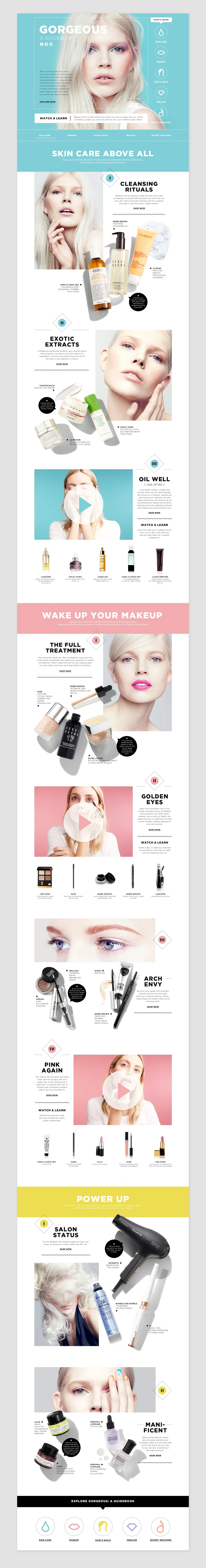 Revolving around the idea of an almanac, this spring beauty campaign features an easy to navigate design system of icons with how-to videos by makeup artist Cyndle Komarovski.